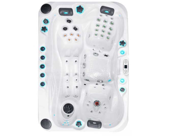 Une utilisation efficace de l’espace et une variété exceptionnelle d’expériences de massage définissent le spa Sensation. Les sièges baquets décalés permettent aux utilisateurs de s’asseoir faire à face sans devoir partager l’espace pour les pieds, et le siège allongé confortable permet même à une personne de grande taille de s’allonger dans le confort.